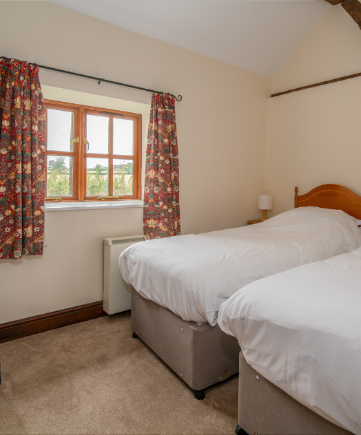 Upstairs, you’ll discover the first of two bedrooms—a cosy and spacious room with twin beds and an ensuite bathroom.